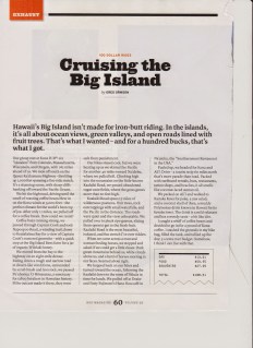Motorcycling Riding Island Style … HOG Magazine publication of $100 rides.