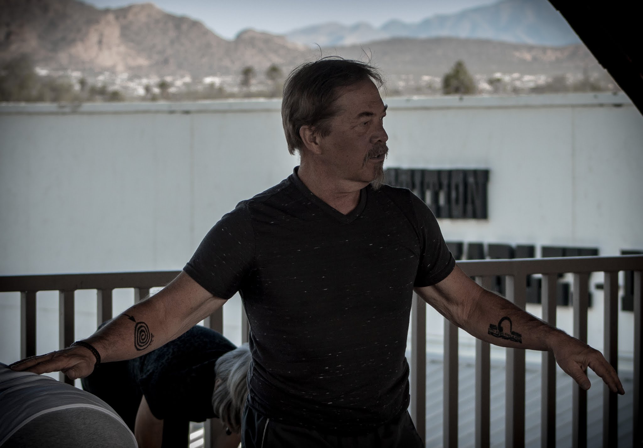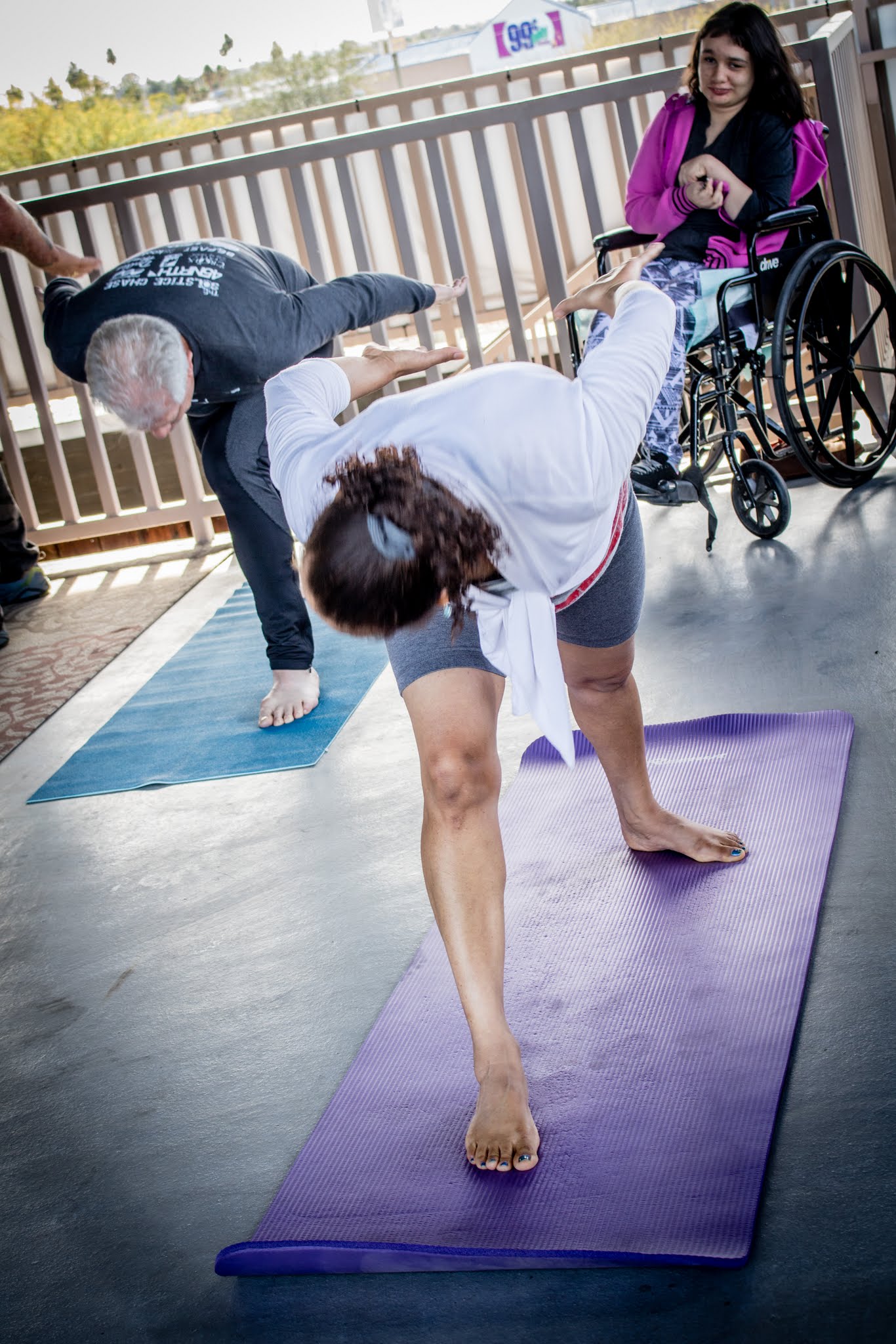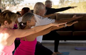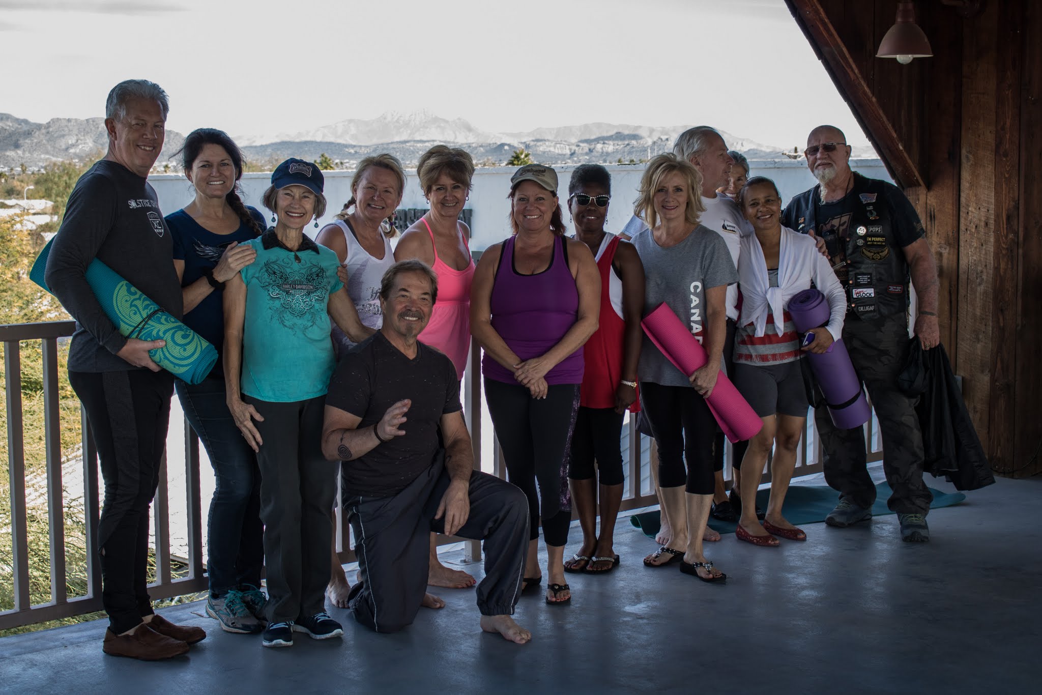 and many thanks to M.J. Britt for these photos of YOGA AND LEATHER: Yoga for Bikers in the Eagles Nest at Superstition Harley Davidson. Thanks also to Brina Brown and Superstition HD for opening the nest for yoga.