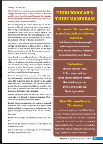 The physical, non-physical and metaphysical medicine of yoga was not created in haste, neither is it learned quickly; but in time, the yogi will acquire life-changing habits turning the inner tide from hasty unconscious breath to slow, conscious breathing.
