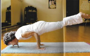 Tao Porchon Lynch, 95 year old yoga teacher in peacock pose.