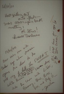 One, John Macdevitt, has passed away, but his Marquette sauna story made its way to my sauna journal, written here, in his warm hand along with sauna words from Jonathan Johnson, Jeff Gibbs, and Russell Thorburn.