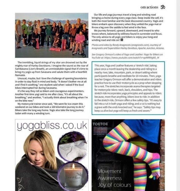 Thank you to Om Yoga Magazine for covering Yoga & Leather (May 2020 issue) on how bikers and yogis can get their zen (and their maintenance) in yoga and on the bike. Teaching yoga in a Harley Davidson Motorcycle dealership in the American South is not common but OM published this story of an uncommon yoga outreach. Read all about it here, or see the video link at the end of this post.