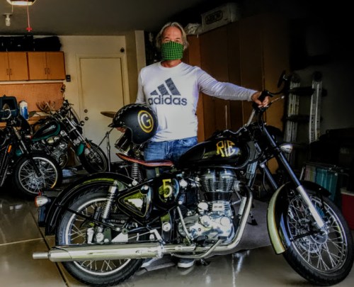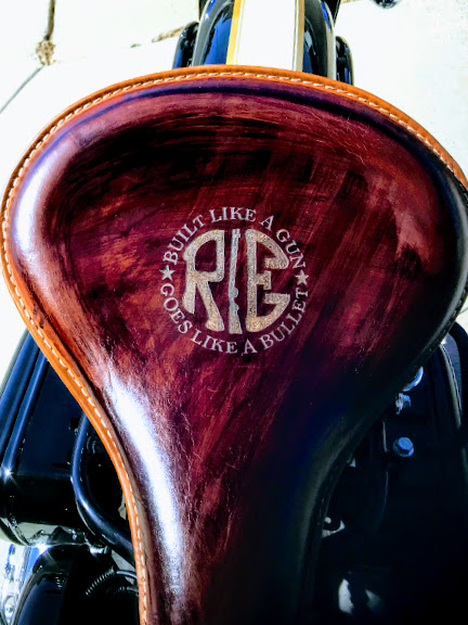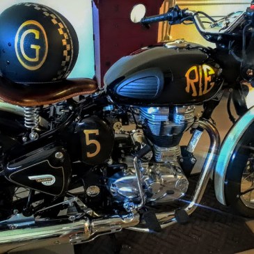 Getting on that bike was the first time I’d rode one since that day (over 40 years ago) in New Delhi. Since then, I’ve read books on the history of the Royal Enfield and have wanted to modify its look. I noticed the old fashioned logo with the Lee Enfield .303 WWI era trench rifle, and decided to use it.