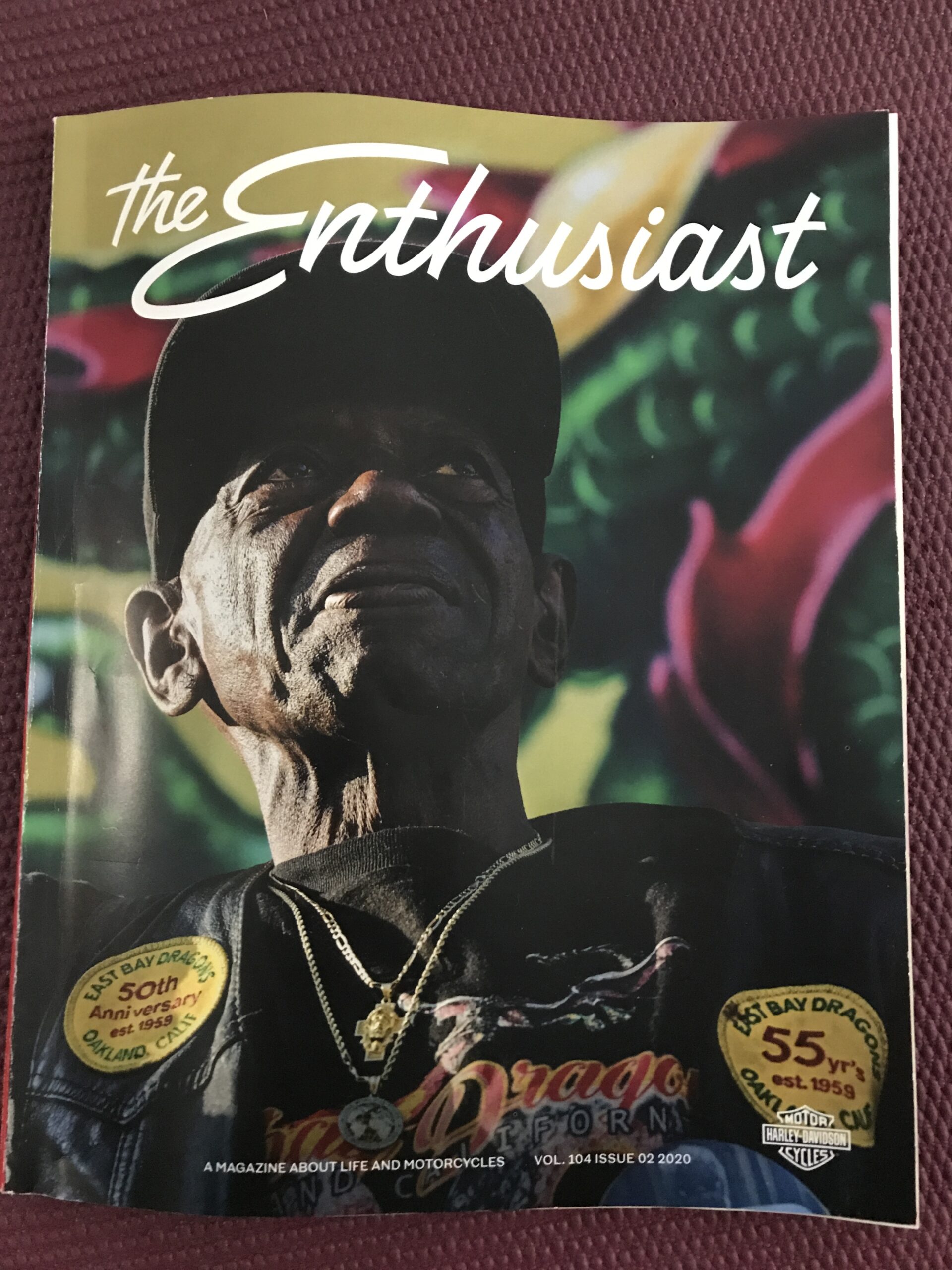 This month, December, 2020, when issue 2 of The Enthusiast arrived, I was eager to see what you did with inclusion in relationship to your stated goals, and what a surprise it was. Your lead story – and cover – focused on the Oakland black motorcycle club, East Bay Dragons with a six page, 13 photograph outlay.