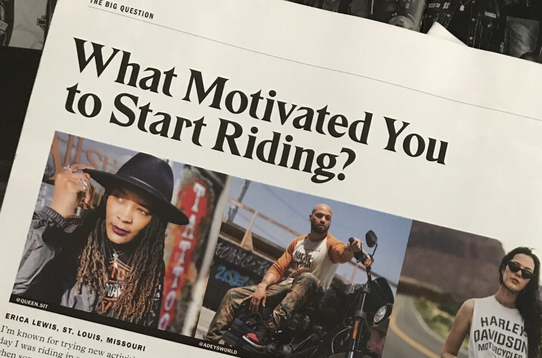 HD over the years has enjoyed great success in marketing to your predominant ownership base – which has been white men with disposable income – and you’ve successfully linked their interests and dreams to a rider lifestyle. But in the past, you’ve put forth almost no effort at diversifying the ridership or the image. Sure, once in a while, HOG Magazine would show a photo of a non-white rider, or a model in a sales magazine, but was rare.