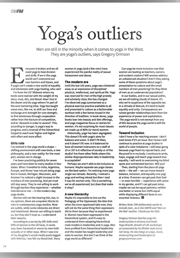 The dominant motorcycle demographic is men, by about a 70% to 30% ratio, and yoga people are about the opposite. Both fields have problems including the minority sex and both are beset with old stereotype’s about who can or should do what. It’s time to dismantle stereotypes about women motorcyclists’ and yoga men. What’s wrong with us that we insist on placing people in boxes or feel threatened by another sex or race.