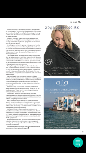 Yoga practice with others, or by ourselves, can open us to a meaningful and powerful connection. Yoga practice in community creates space for dialogue and relationship; it lays down a platform for a starting point for all community and that is our encounter with self.