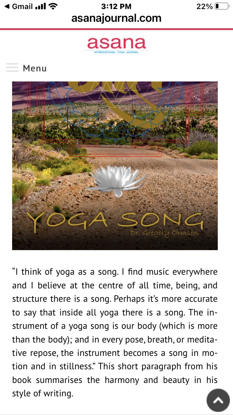 โ€œA book for the ages . .. Dr. Ormsonโ€™s Yoga Song is a work of art sharing eternal truths. Hear Yoga Song and absorb the benefits.โ€ Amazon Review, Genevieve Brackins PhD, RYT, Scottsdale, AZ