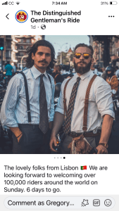 Below I include a personal story on how I got started in this ride AND why it’s important to me. But for now, enjoy a few photos from around the world where the DGR will be happening in 121 major cities with dapper riders raising money for men’s health and having fun doing it. And again, if you are inclined, go to my link and drop a dime.